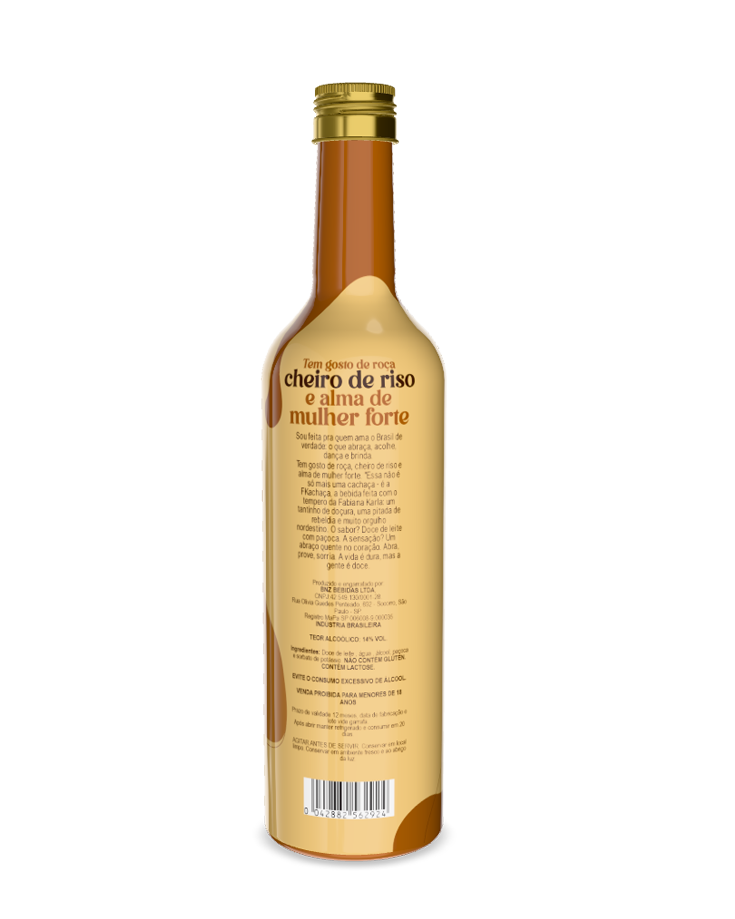 FKachaça é um licor cremoso sabor doce de leite com paçoca, criado para celebrar a alma brasileira — do chapéu de couro ao riso fácil da nossa cultura.